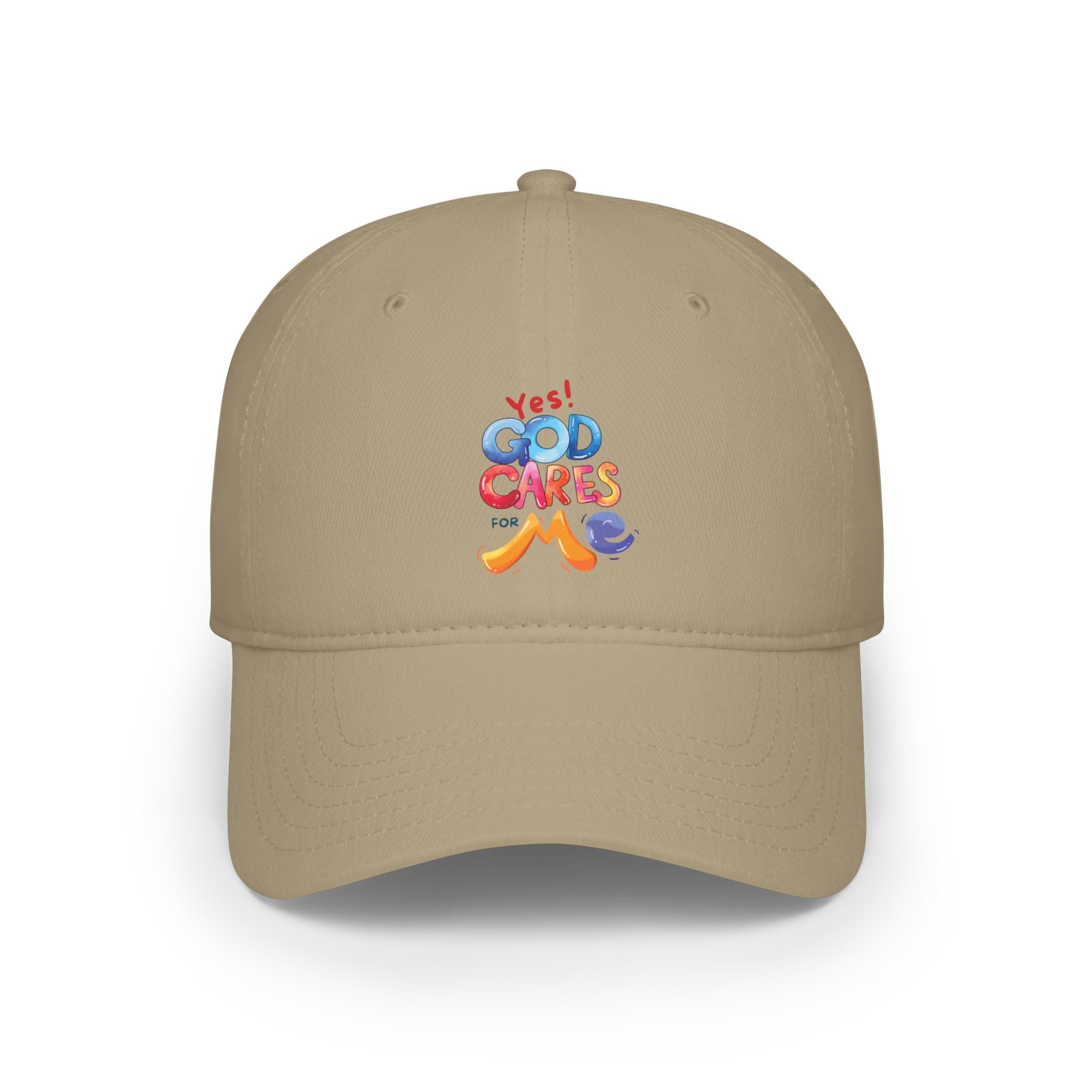 This low-profile baseball cap brings a quiet, playful confidence to everyday wear. Soft cotton twill and an unstructured, low-fitting crown let the cap sit gently on your head — not competing for attention, just adding a relaxed finishing touch. The small, colorful stitched design on the front reads like a wink: bright, cheerful letters that catch the eye without shouting. It’s the cap you reach for on slow weekend mornings, while running errands, or when you want to add a touch of personality to a simple outfit. The adjustable Velcro® closure and reinforced seams mean it moves through life with you — durable, comfortable, and unfussy.